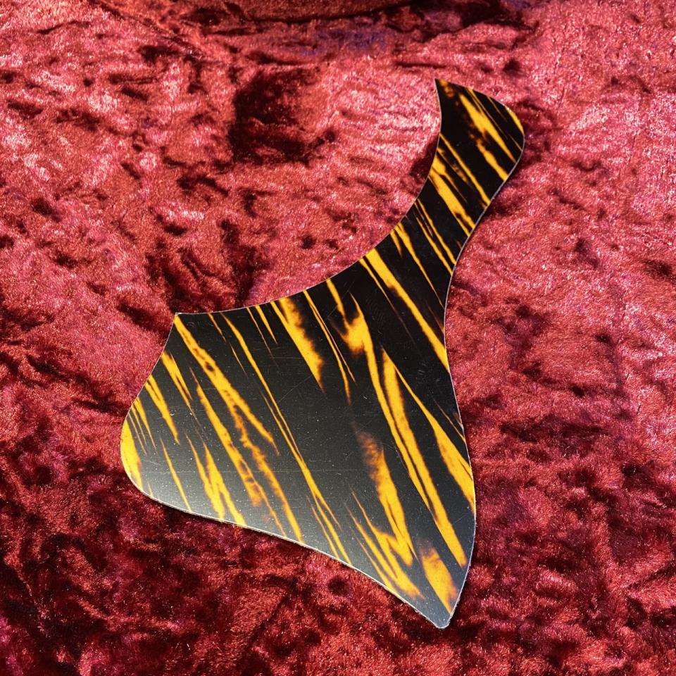 現状はノンピックガード仕様ですが、Fire Stripe柄のピックガードが付属いたしますので、お好みに応じて装着可能です。