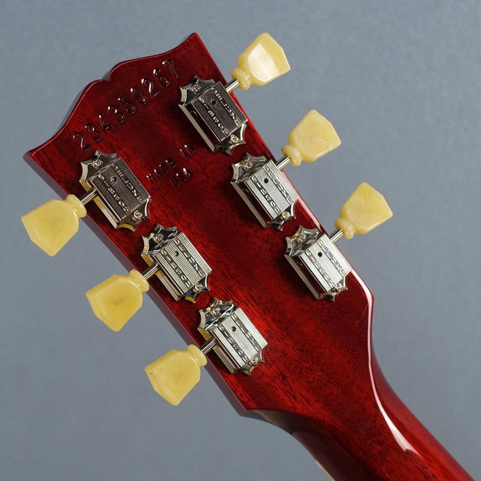さらにアクリル・トラペゾイド・インレイが施されたバウンド・ローズウッド指板、キーストーン・ボタンのヴィンテージ・デラックス・チューナーを採用することで、レスポールらしい美観を引き立てています。