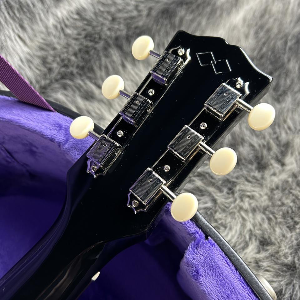 サイド&バックには、豊かな中低域と温かみのある響きを持つジェニューイン・マホガニーを使用。ヘッドの背面にはEpiphone Inspired By Gibson Custom ロゴを配置。