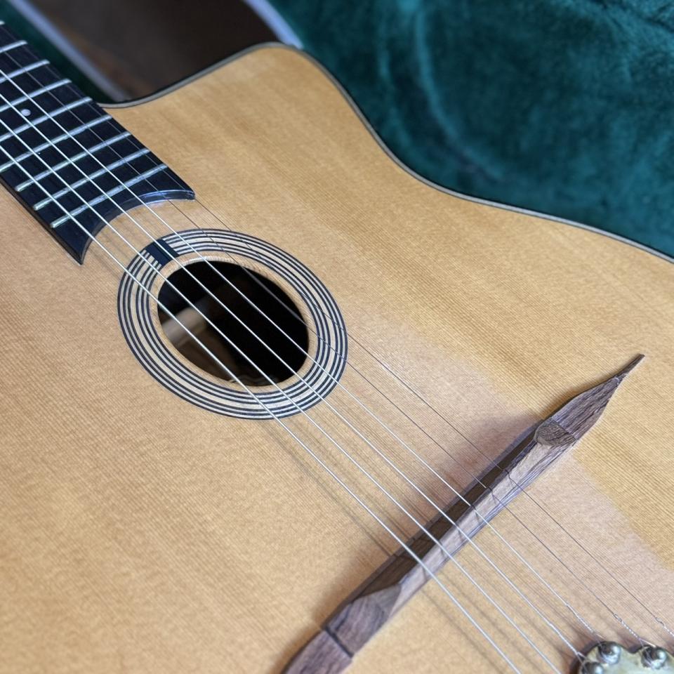 1998年にギタリストのアラン・コーラと元テイラーの職人ジョン・S・キナードにより設立されたDell’Arte。低価格ながらもマカフェリタイプの魅力をしっかりと味わえるDG-P1が中古入荷しました。