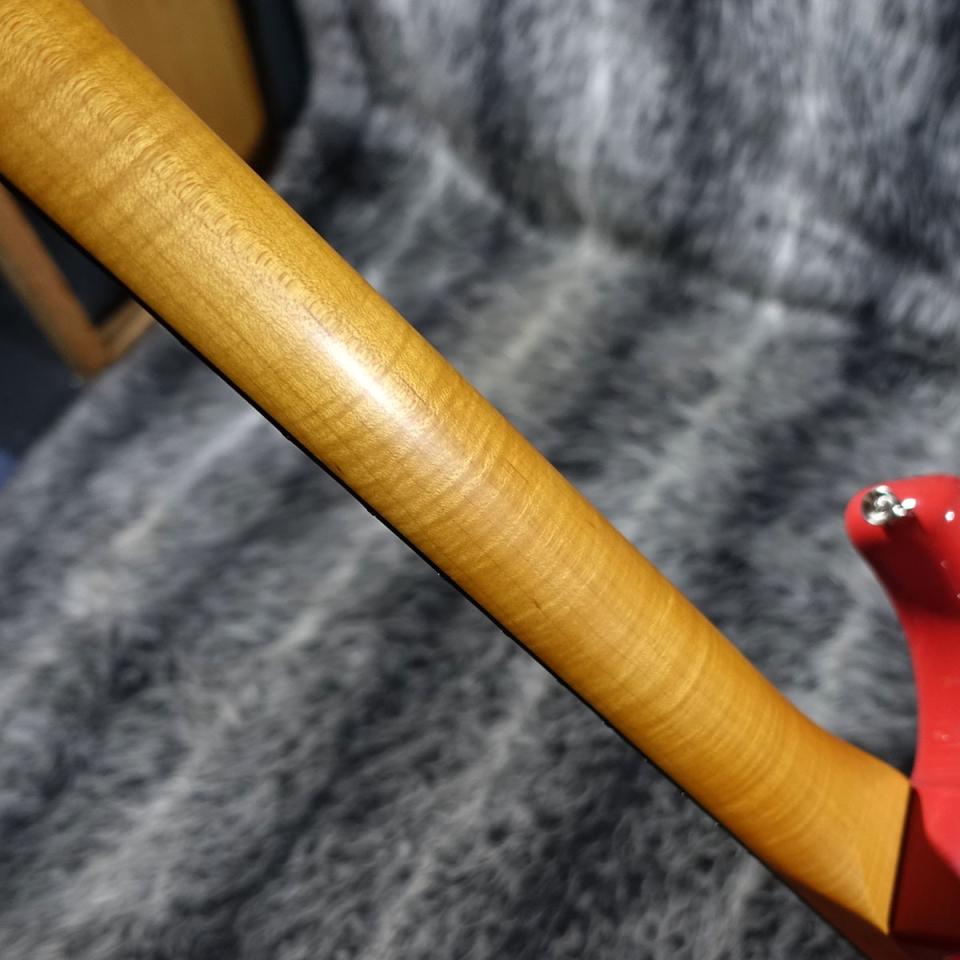 アルダーボディに3Aグレードのフレイムメイプルネックを贅沢に使用した一本。