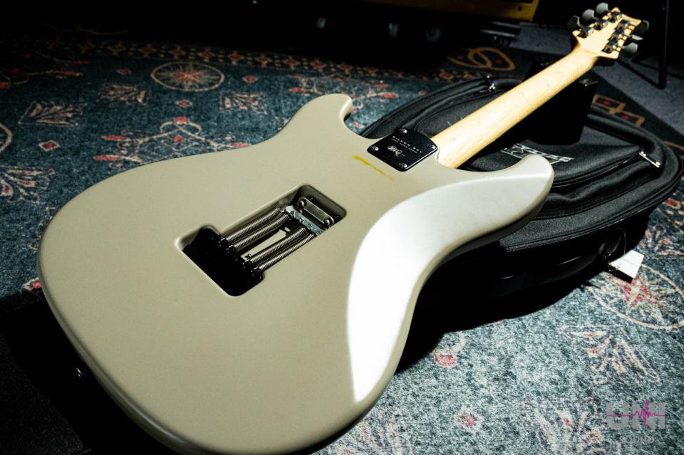 唯一近いなと感じたのはネックの握りで、こちらはオールドテイストのフェンダーっぽかったです。しかしパーツは現代風というか、チューニングや楽器そのもののコンディションの安定感は抜群。モダンロックにもブルースにも対応出来る抜けのいいクランチ・クリーントーン、ボリュームを絞った時のゲインの下がり方もいい塩梅で、使いやすいモデルだと思います。