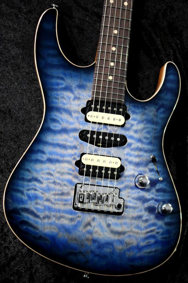 Suhrより待望のカスタムモデルが入荷です。人気なブルーバーストに深くワイドにうねる極上キルト材を採用。担当超オススメ個体です!