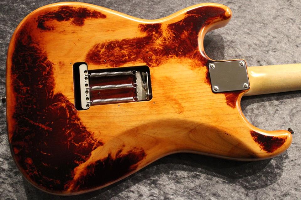 それを土屋氏が激しく長年弾き倒した事で塗装の大半が剥がれ落ち、現在のルックスになりました。