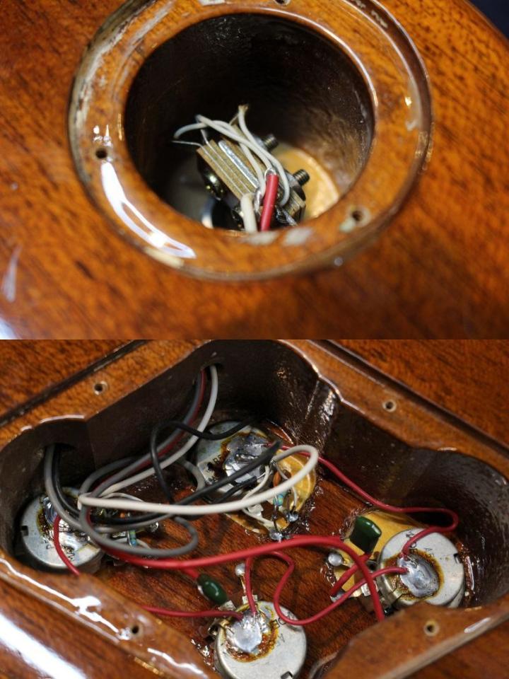 ボディバックや側面に打痕がちらほら見られますが、ボディトップやネック裏などは比較的ダメージが少ないように感じます。
