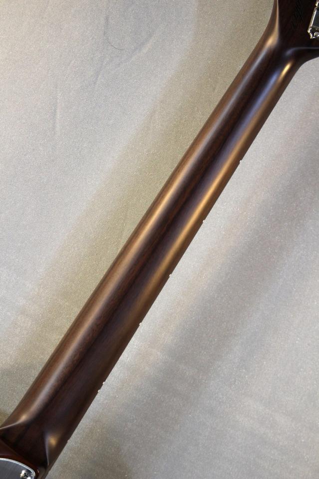 ネックを成型できるほど大判のインディアンローズウッドは貴重で、本モデルの次回生産は未定となっております。