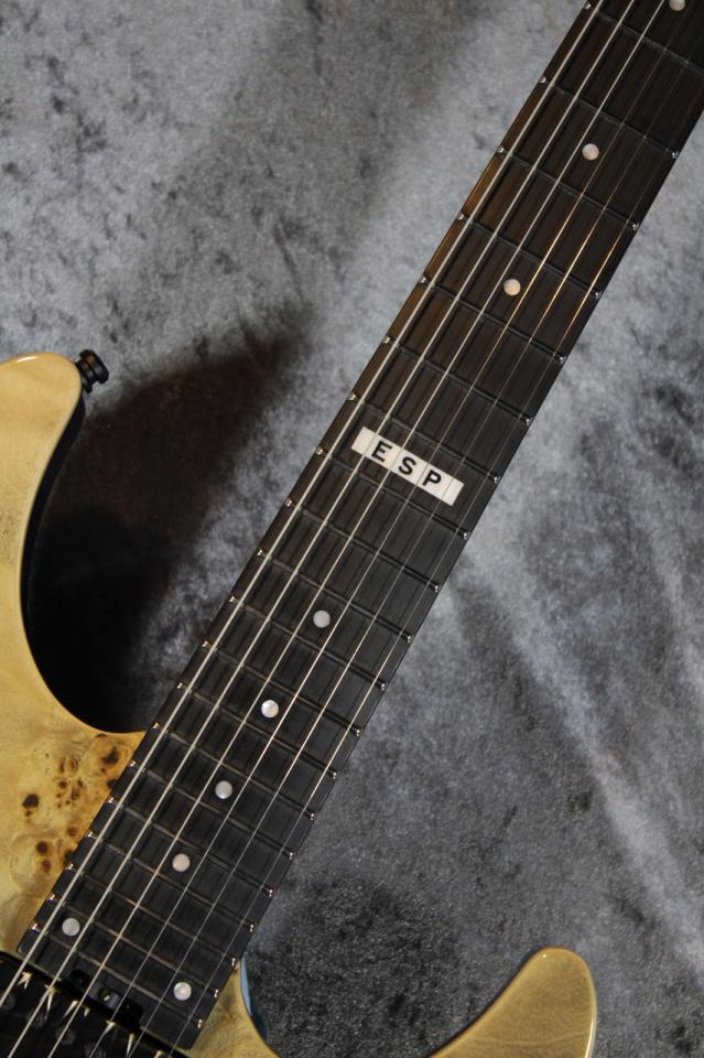ボディは美しいバールメイプルを贅沢に使用したトップ材、アルダーバックのラミネート構造です。ネックはハードメイプル、指板はエボニーです。ネックはボルトオン方式でボディにジョイントされています。