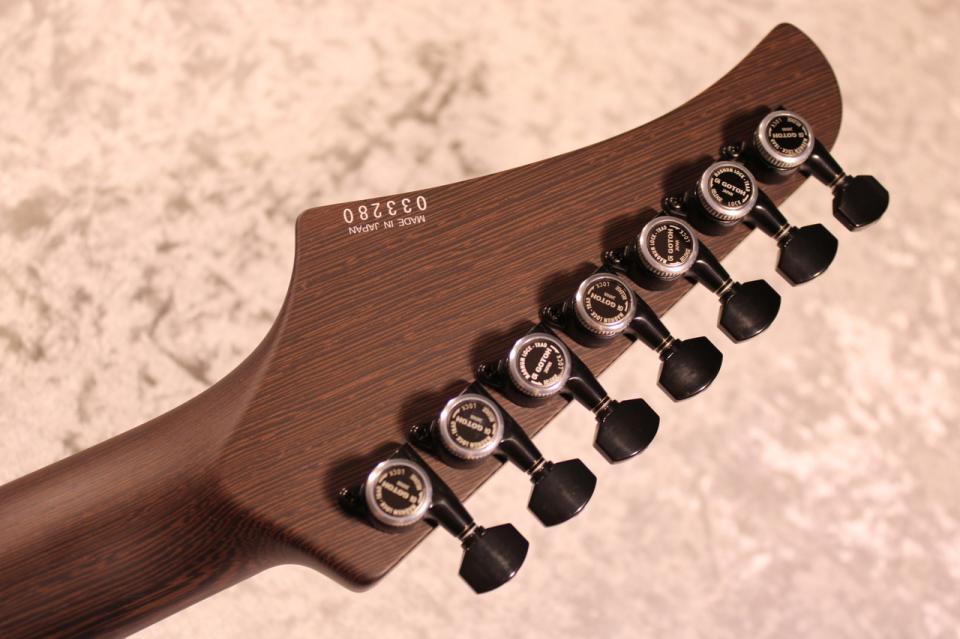 トップ材の中でも一点物感が強いバール材ですが、特に7弦という特殊なスペックにこそ相応しいと感じました。
