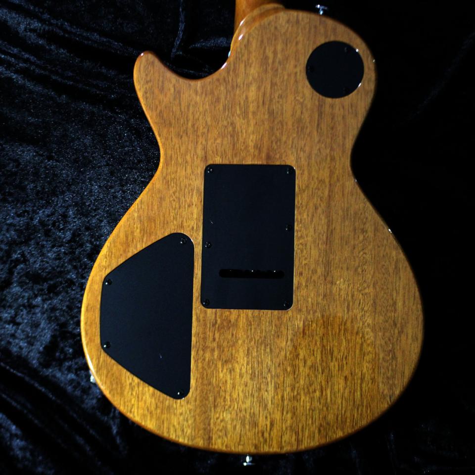 チェンバード構造のマホガニーボディに、硬質でレスポンスの良いキルトメイプルトップを組み合わせることで、