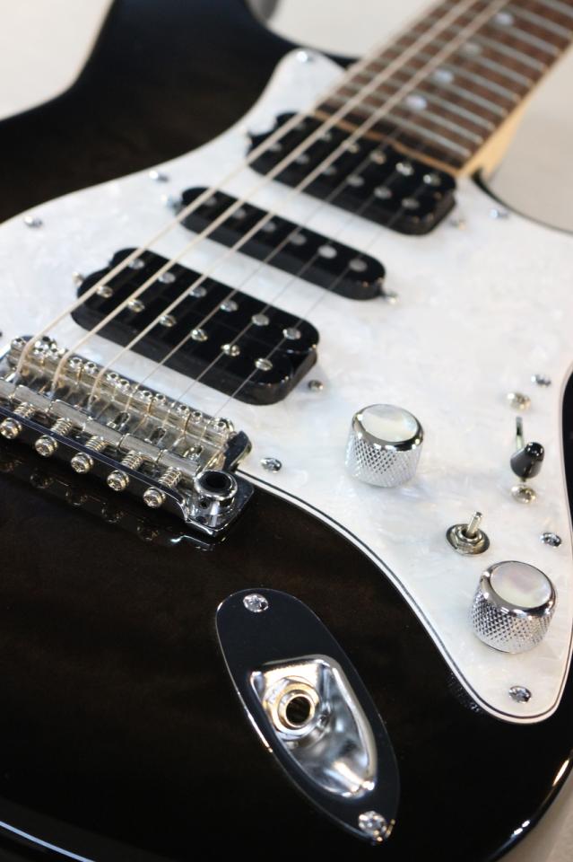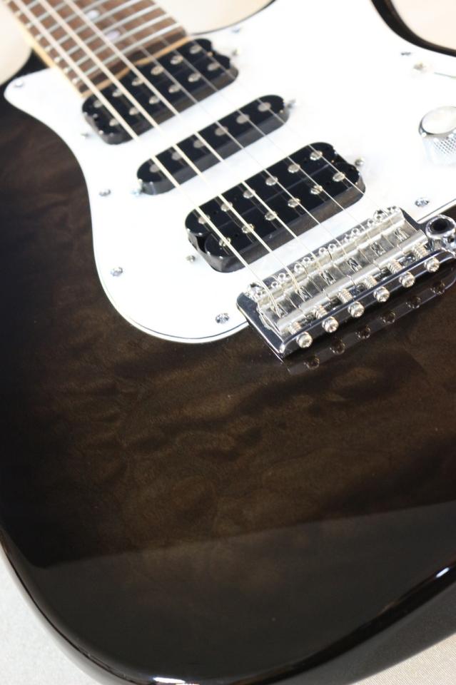当個体にはキルトトップ/アルダーボディーをシースルーブラックバーストカラーで塗装した、シンプルながらもシックで高級感のあるルックスです。