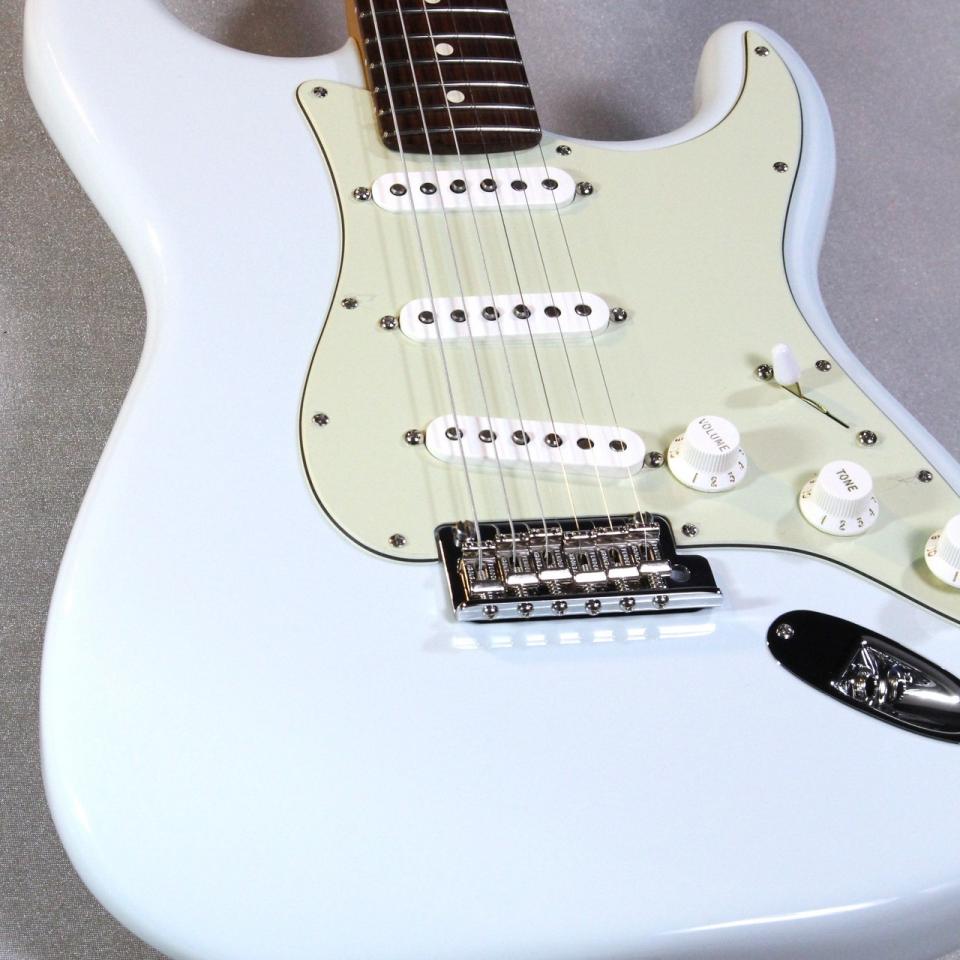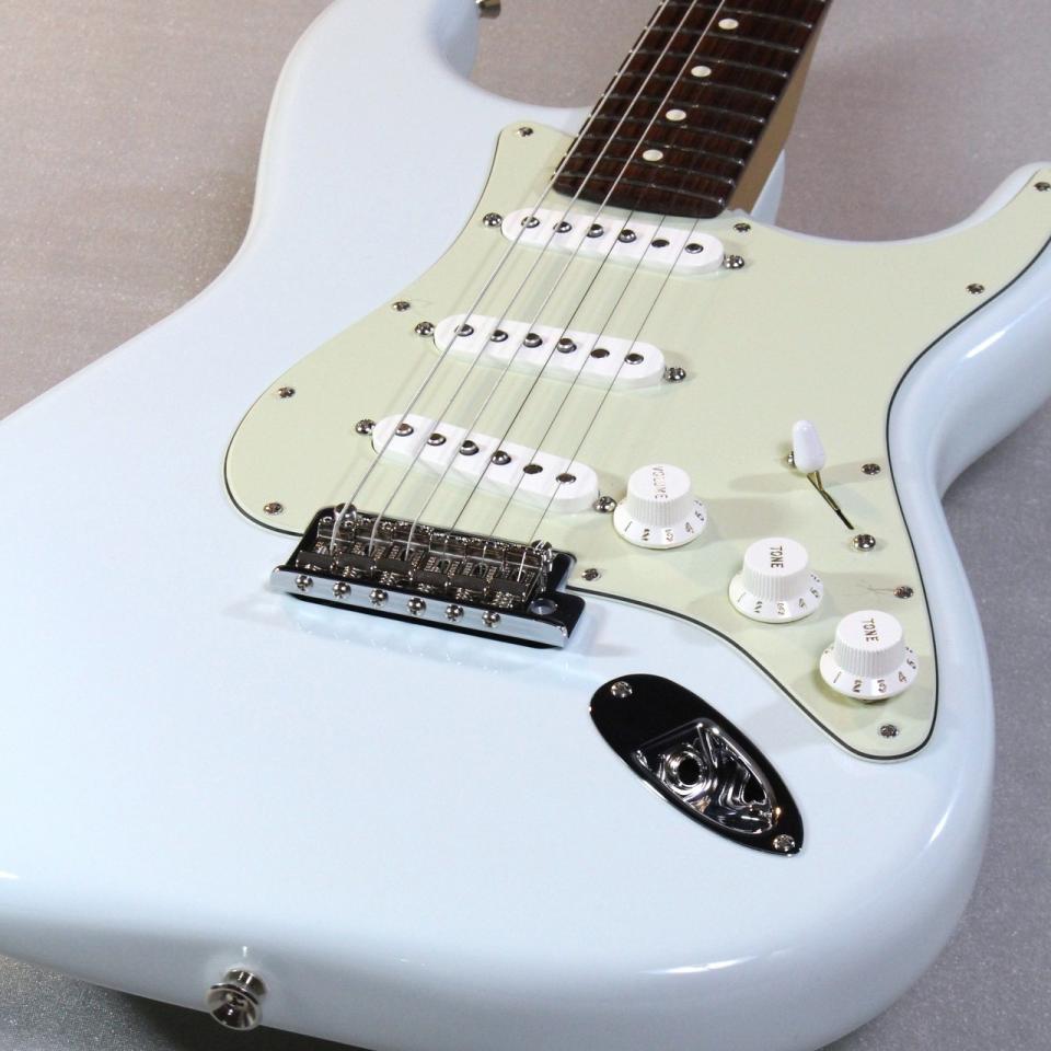 カラーにもカタログ外ながらビンテージストラトで定番の"Sonic Blue"を採用し、扱いやすさを向上させたモダン仕様ながらビンテージスタイルを持ったギターに仕上がっております。