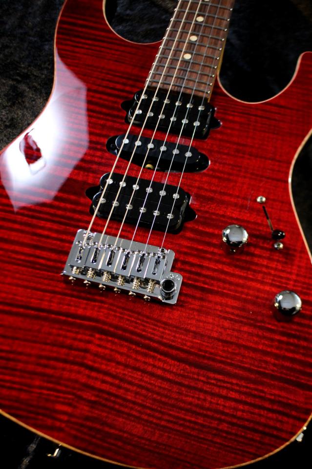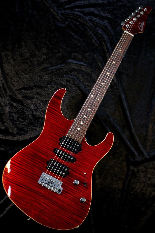 2ピースバスウッドボディに、トップ材には贅沢なフレイムメイプルトップ、指板にはパーフェロー、ネックにはローステッドメイプルを採用。
