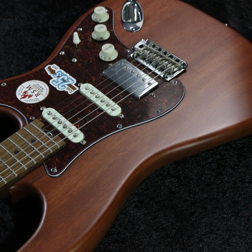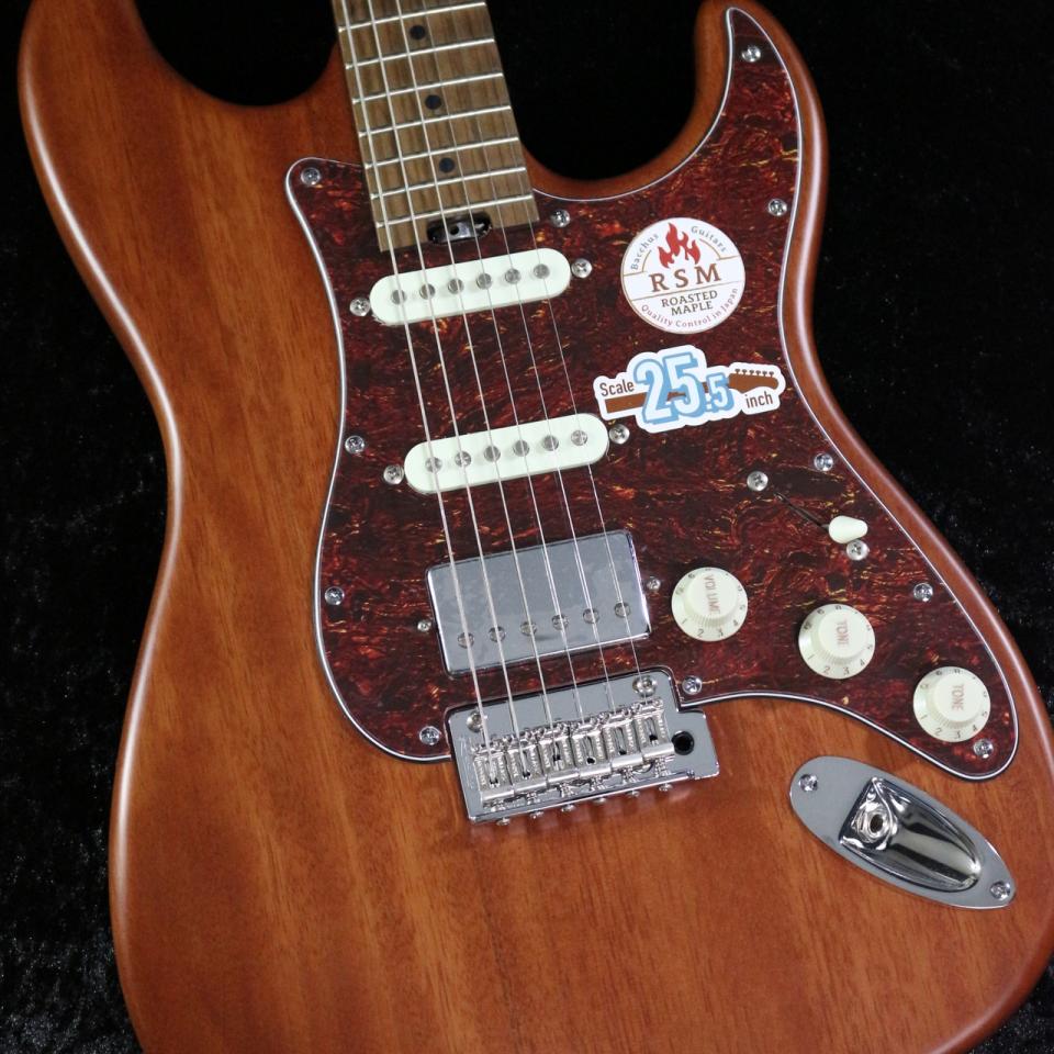 ローステッドメイプルとはメイプルを高温で加熱処理して材の中の水分や油分を揮発させることにより剛性を高めた材。ネックに使用されるとその効果は安定性だけでなくサウンドにも及び、豊かな生鳴りと経年変化したビンテージのようなこなれたトーンを生み出します。高級機種で使われることの多いこの本格派仕様をリーズナブルな価格帯に落とし込んだBacchusの新しい製品ラインナップです。