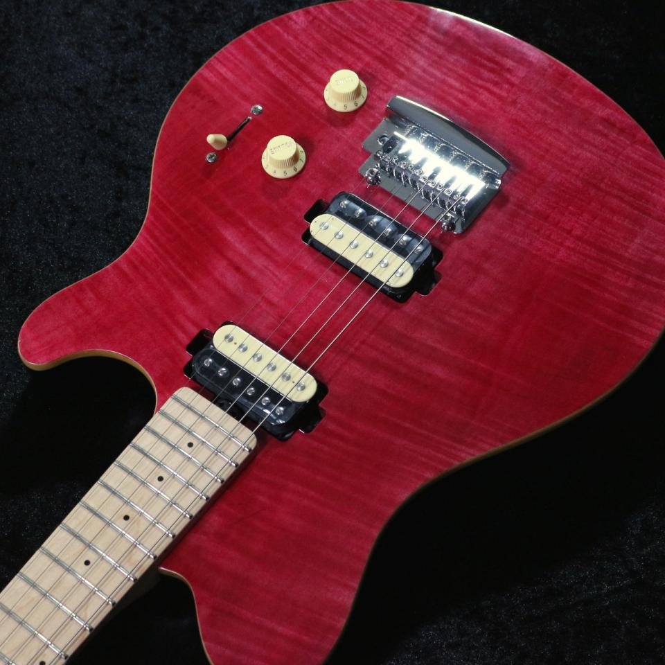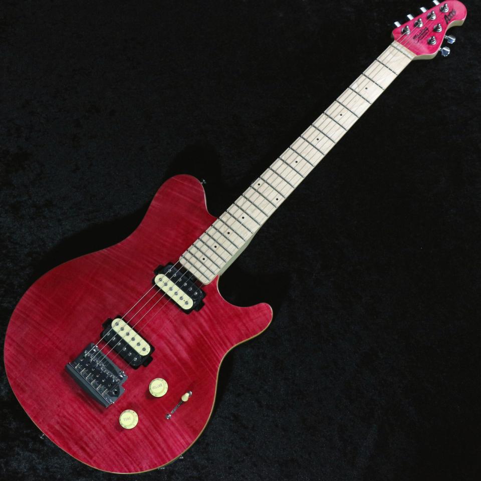 某氏の演奏する個体はフロイド下にリセス加工があるものの、SterlingのAX3ではノンリセス仕様(Axisはこれば通常スペック)等といった違いはございますが、とにかく先生と同じ色のAxisが欲しいとお考えだった方にとっては最高のギターではないでしょうか。