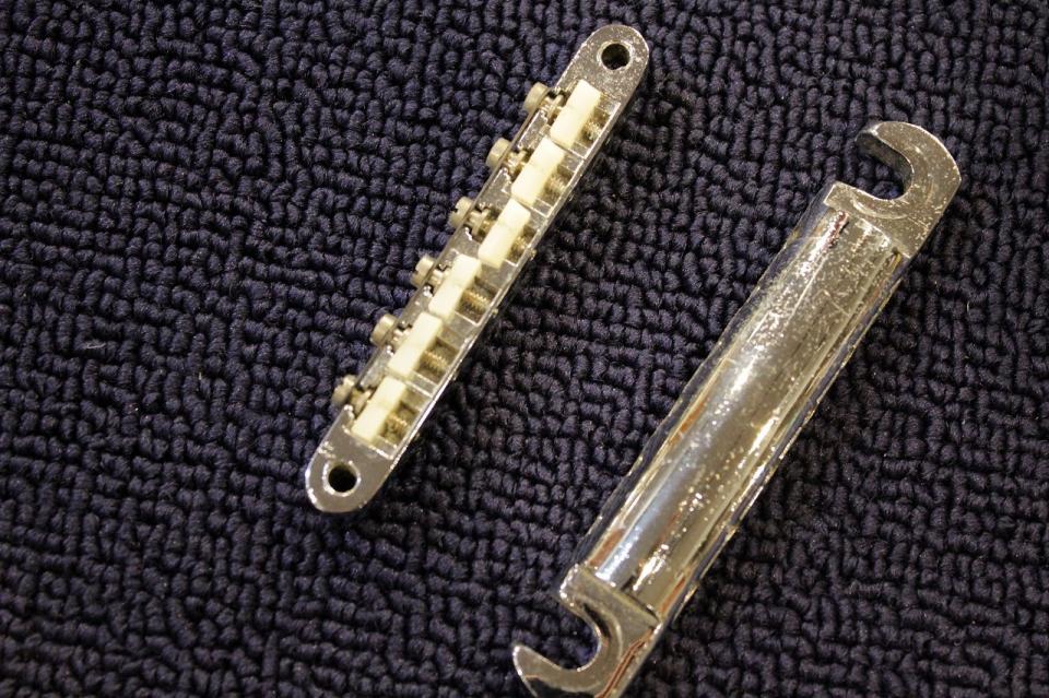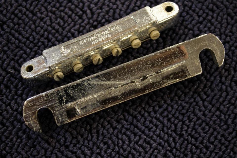 オリジナルのフレットやナットの消耗具合を見るに、サドルだけが経年劣化を殆どしていないのは違和感がある為、恐らく交換されたのではないかと判断致しました。