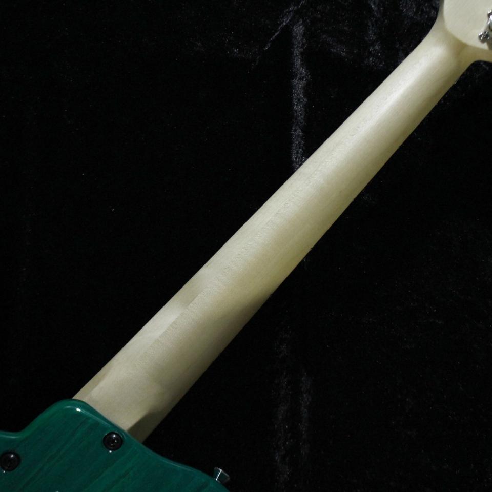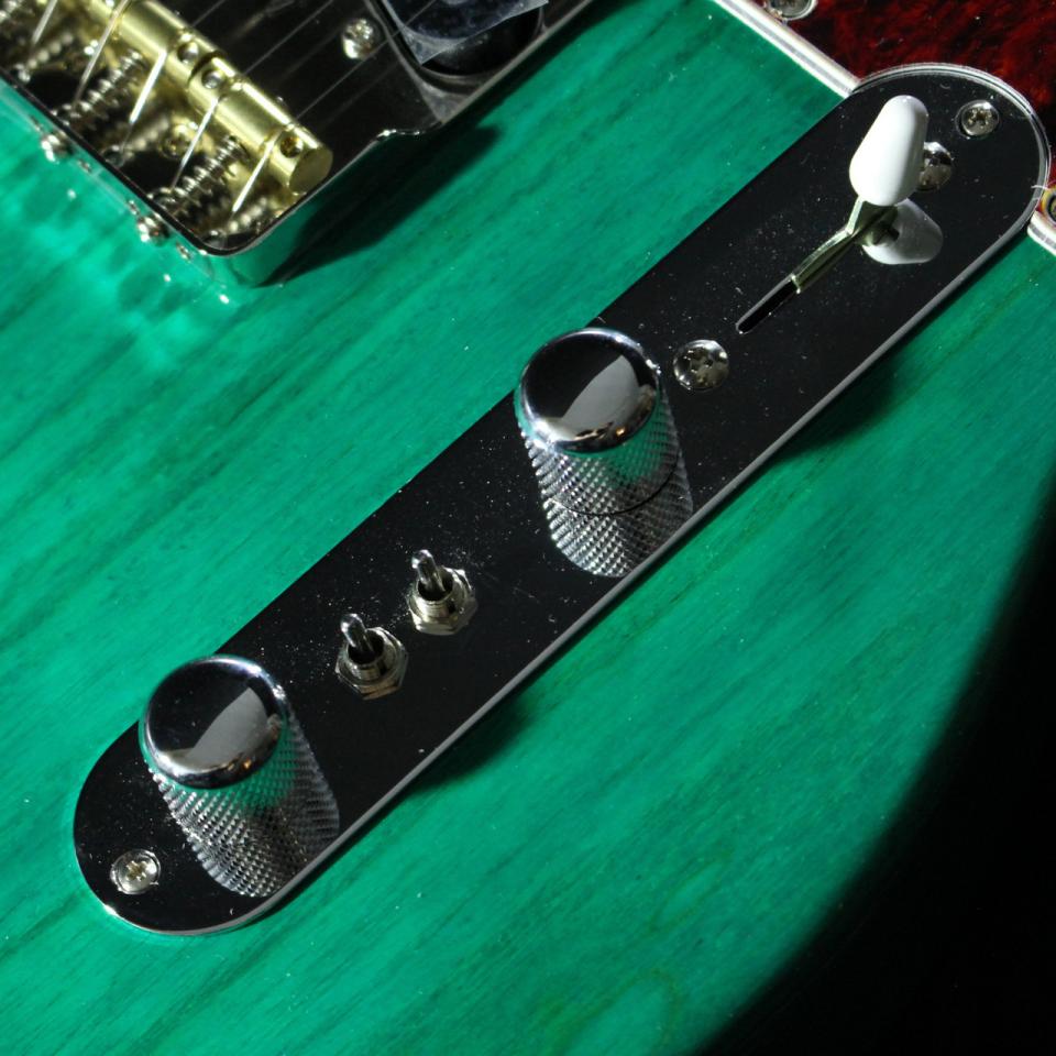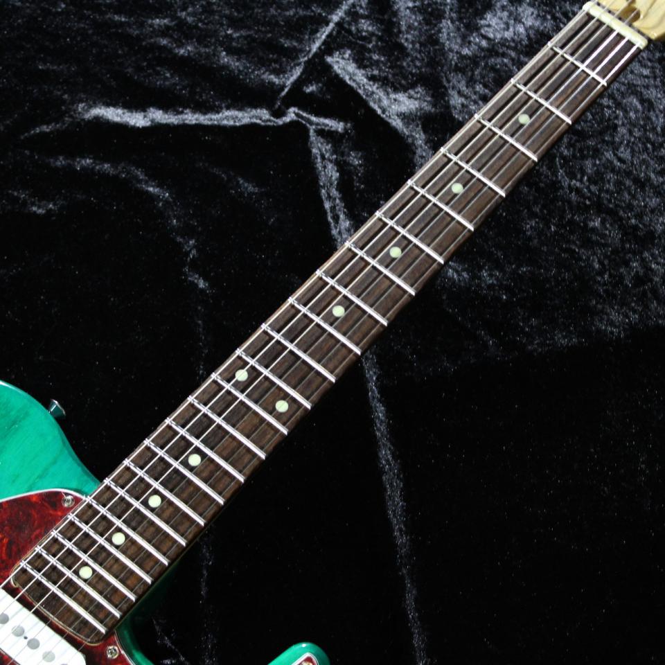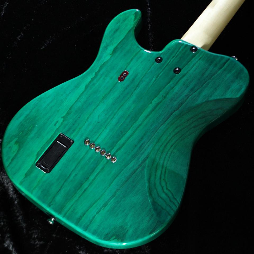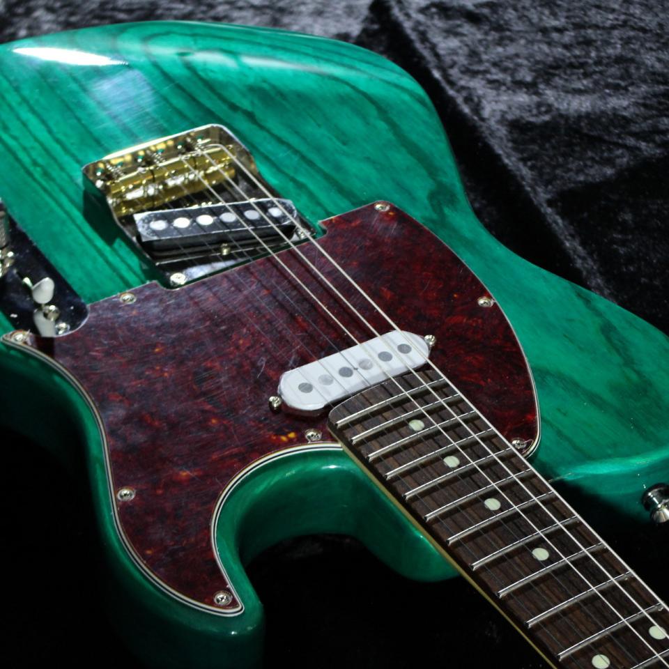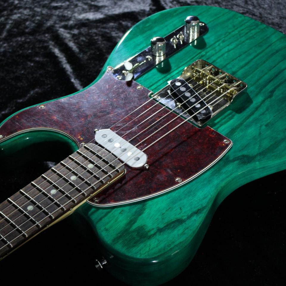 鮮やかなグリーンカラーは本オーダーならではの仕様で、べっ甲ピックガードとの相性も抜群。