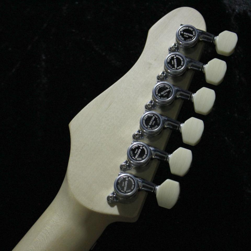 当モデルのスペックは、軽量なアッシュボディに、3ピースメイプルネック、指板にはローズウッド指板を採用。