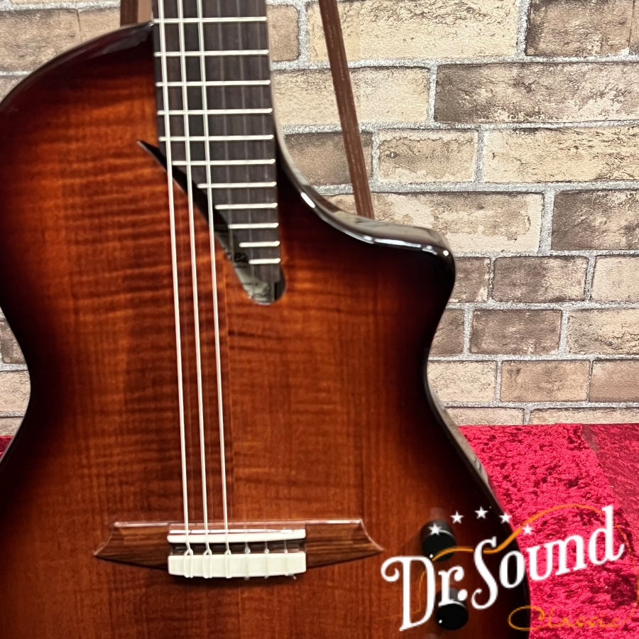 「Hispania」はメイプルトップマホガニーボディのフルホロウ構造、 豊かな生鳴りと高いハウリング耐性を両立した新世代クロスオーバーギターです。