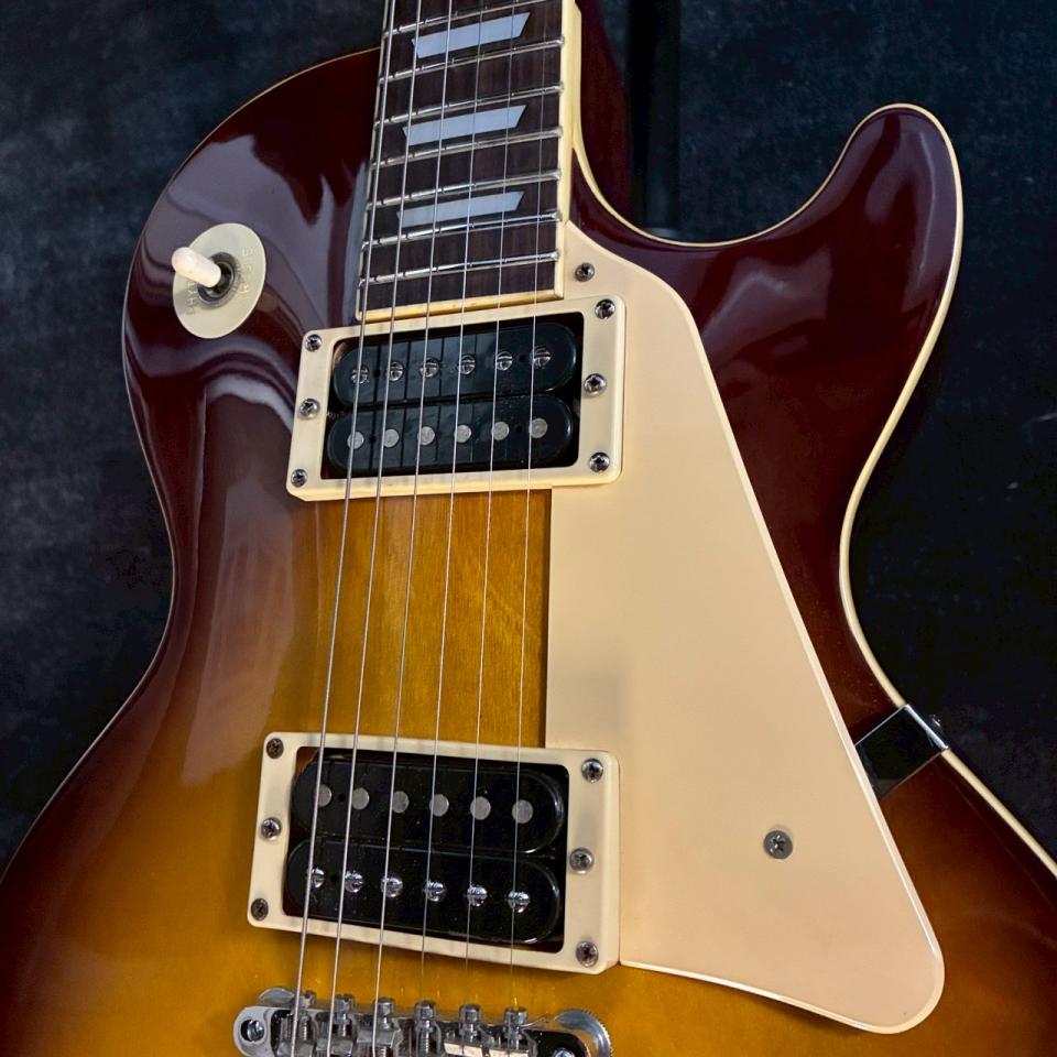 ハムバッカー2基による王道の仕様で、クリーンでは温かみと厚みのあるサウンド、ドライブ時には粘りのある中域と力強い押し出し感が楽しめます。ロック、ブルース、歌モノ系まで幅広く扱いやすく、実戦的な一本としても優秀です。
