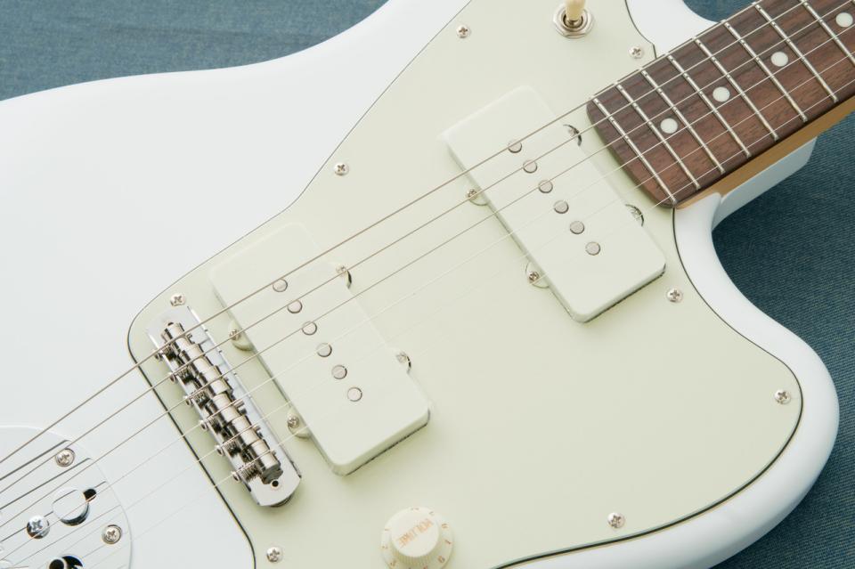 今回のモデルは「Made in Japan Hybrid II Jazzmaster」を限定カラー「Satin Arctic White」とマッチングヘッドを採用した特別仕様となります。