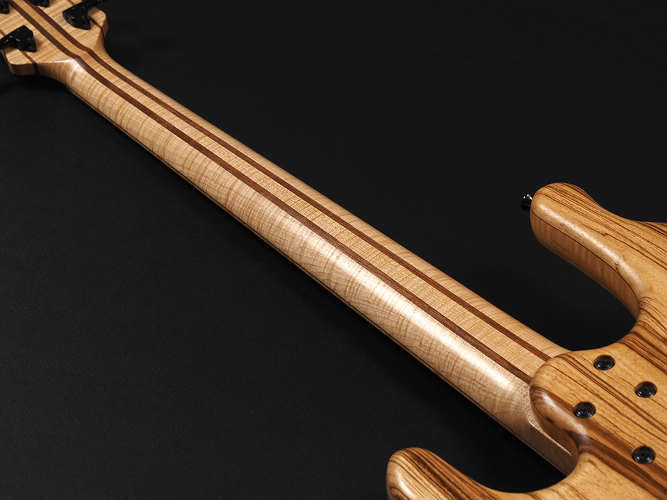 ボルトオンされるネックはメイプル/ウォルナットの5P構成です。