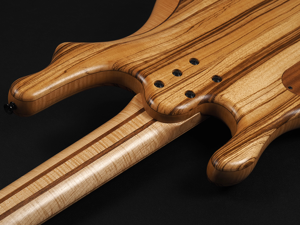 ボディはローズウッド/ゼブラウッド/メイプル/ゼブラウッドのマルチラミネートにて構成。