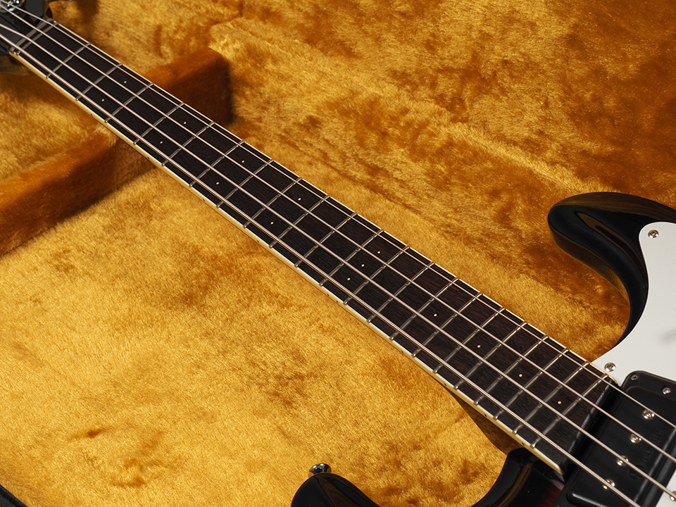 アメリカン・サーフロックの象徴的ブランド Mosrite の「The Ventures Model VMB-1000」ベースモデル、いわゆる“ジャパン・モズライト(黒雲製)”の希少な中古品が入荷しました。