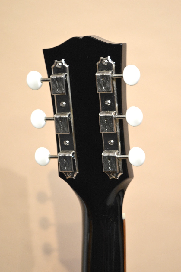 ソリッド・スプルースTOP、ラミネイト・マホガニーSIDE&BACK、マホガニーNECK、ローズウッド指板&ブリッジ、L.R.BaggsエレメントVTC PU、実測42.5mmナット、635mmスケールのラウンド・ショルダー・ボディー。ブラック・フィニッシュにホワイト・ガードが映えるギブソン・ライクなルックスが魅力です!
