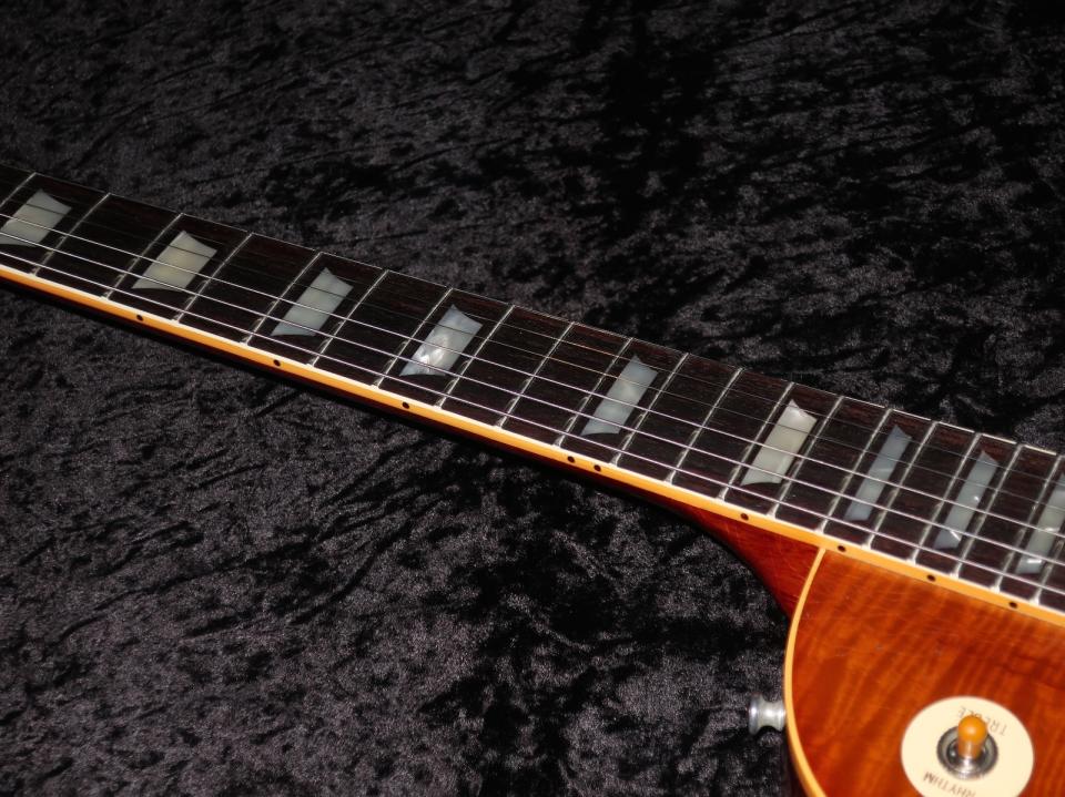 2025年4月 Gibson Brands Partner Experience Japan Dealer in Nashvilleにて現地選定材を使用した超リアルトップのLight Aged仕様。選定材の中でもより厳選された超極上 "R-Top” 材を使用した特別な1本。ネックシェイプは’59 LP “Cシェイプ”とフレットは’59 LPの"Medium Jumbo"、PUは特別仕様の"Custombucker Alnico 4 Double Classic White“ アンポッテド“を搭載キャビティ内のコントロール・ホットはヴィンテージのカーブを追及した500KΩポットにバンブルビー・コンデンサーもよりヴィンテージに近づけたものを搭載、指板とネックとボディーはハイドグルー(ニカワ)で接着されております。