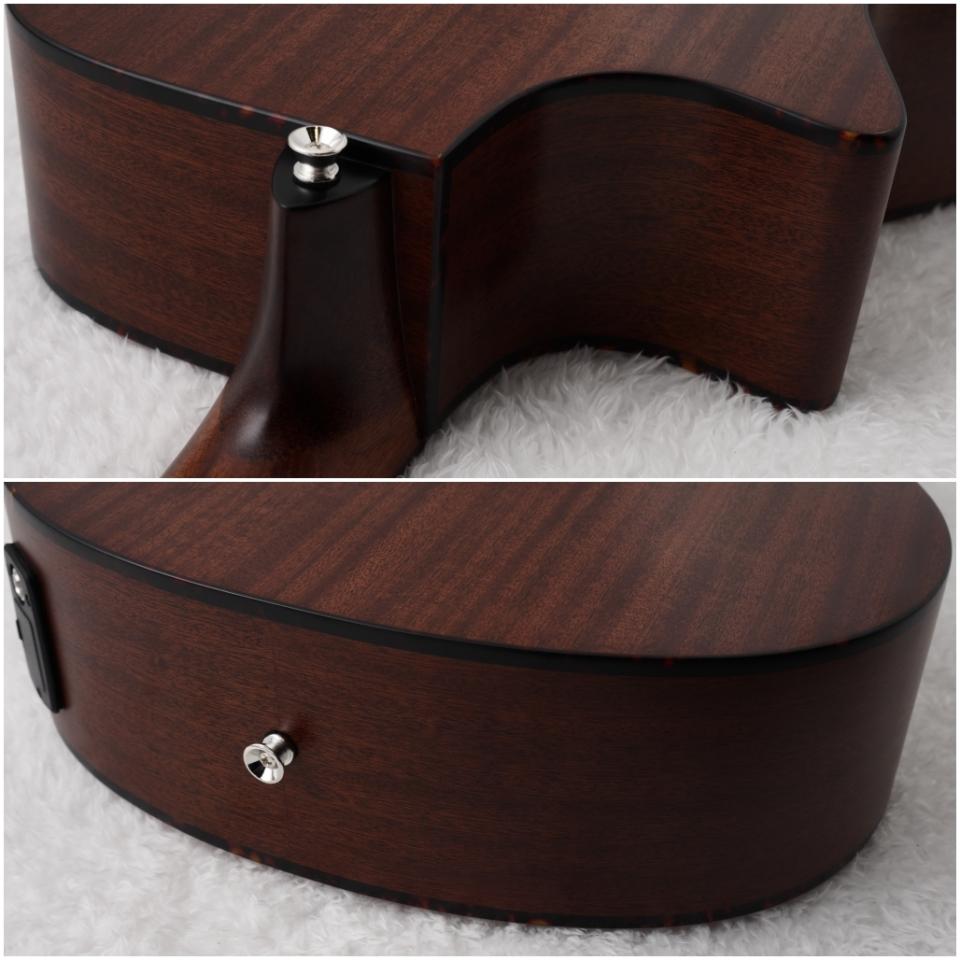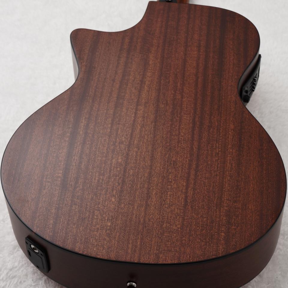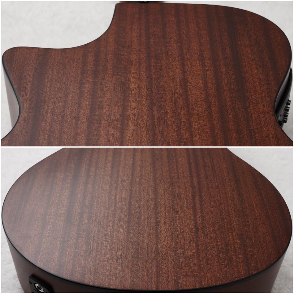 ボディー・トップは板材の時に真空状態で熱を加えることで余分な水分やミネラルを取り除いたソリッド・スプルースを使用し、サイドとバックにはサペリを用いて狂いの出にくい安定したボディー剛性を実現しました。