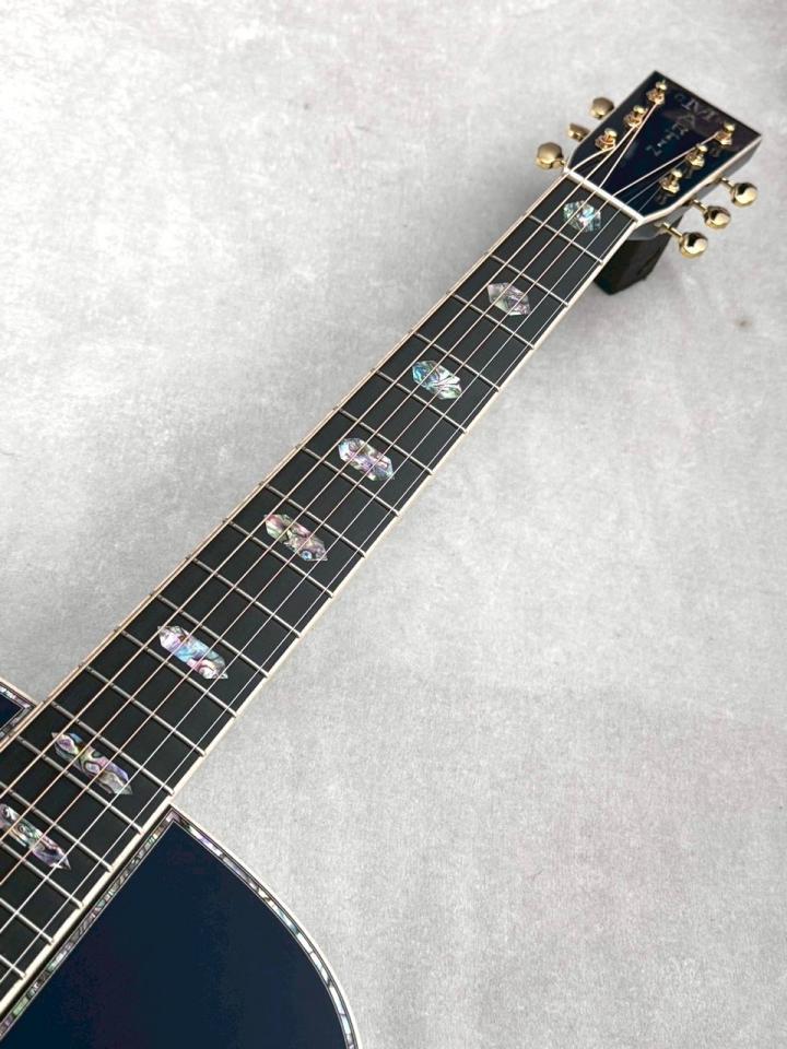 【CTM 000-45 Navy Blue SitkaSpruce×IndianRosewood】42.9mmナット幅と細めで握り込みのしやすいLowProfileネックシェイプ、全体のカラーにNavyBlueのカラーで仕上げた当店オリジナルオーダー品。MartinのNavyBlueカラーはエリッククラプトンが持つ000サイズのMartinでも一時期使用したことで印象に残っている方もいらっしゃるのではないでしょうか。