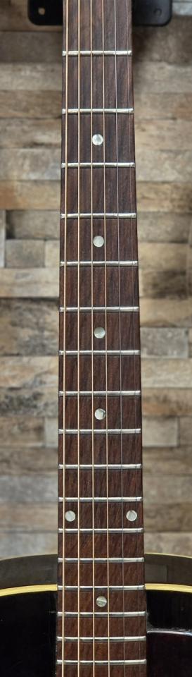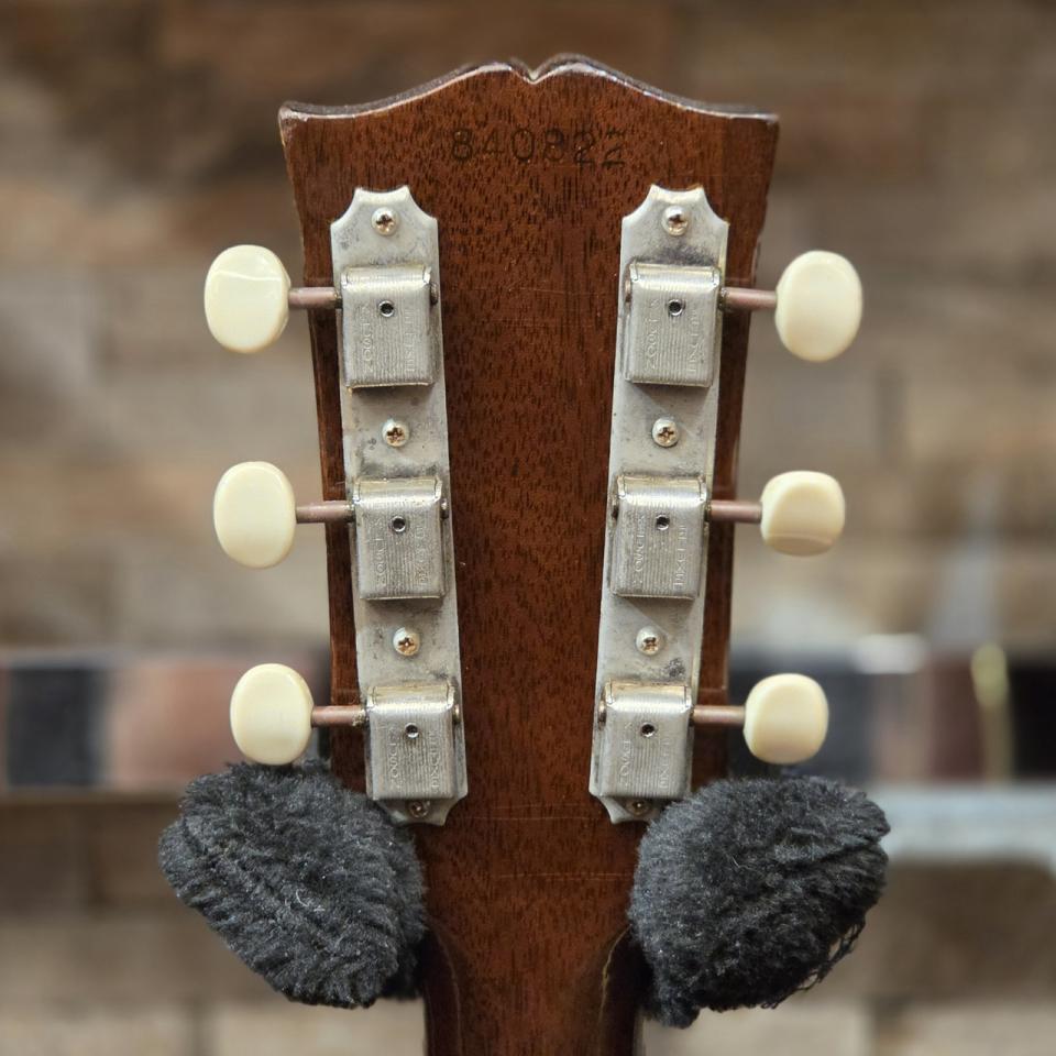 本個体は1966年製とみられるLG-1で、ナローネック期の特徴である約39mm幅のネックを採用しています。手の小さい方やエレキギターからの持ち替えにも馴染みやすい仕様です。