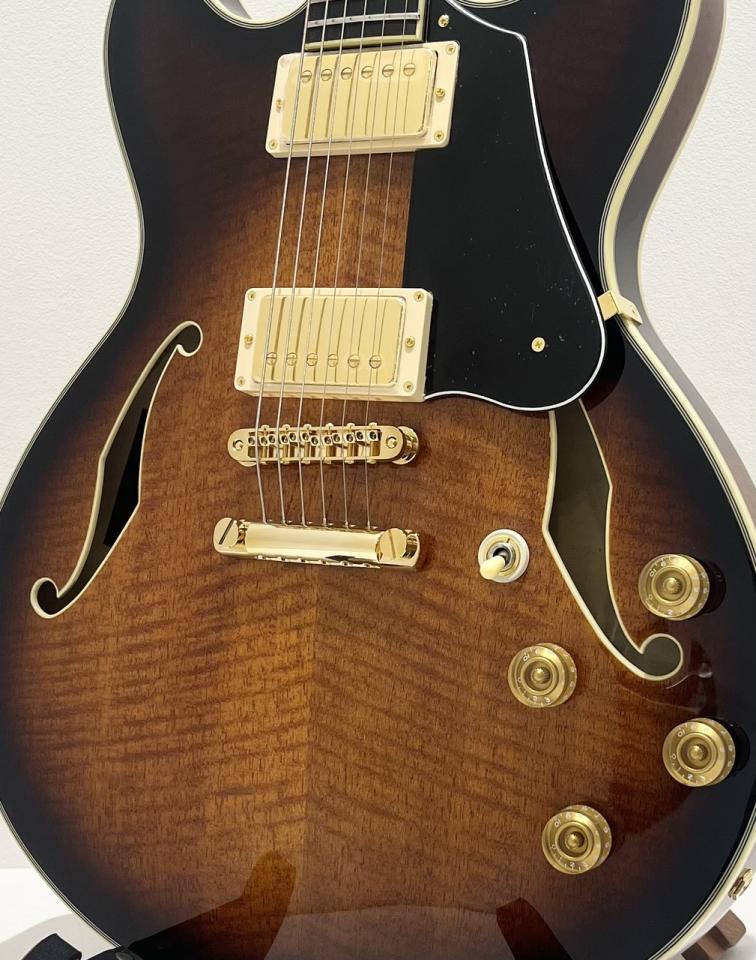 ボディには美しい杢目が目を引くフィギュアド・アニグレを採用。厳選された素材と、日本が世界に誇るIbanezのクラフトマンシップにより、驚くほど豊かでリッチな箱鳴りを実現しています。伝統的なセミアコ構造を持ちながら、ジョンスコの多彩なプレイに対応するため、フィードバックに強く芯のあるサウンドが特徴です。