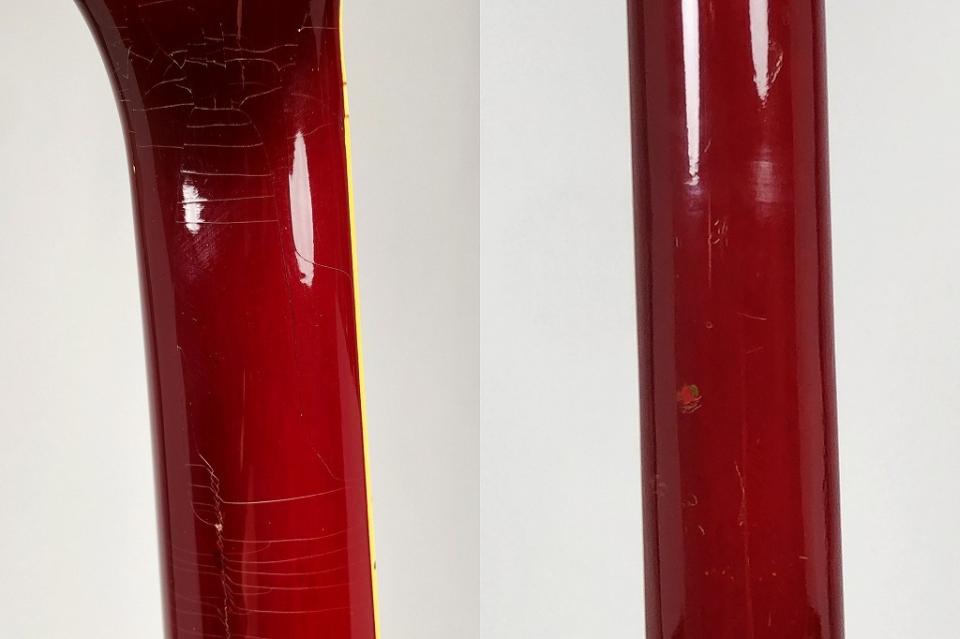 演奏出来ます。その作業伴いにネック裏がリフィニッシュされています。作業から年代は経っているとみられ
