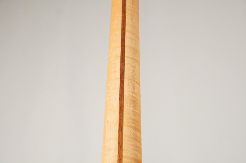 トップのメイプルには、ワイドで立体感のあるフレイムがびっしりと現れており、光の当たり方や角度によって表情を大きく変える非常に美しい仕上がりです。