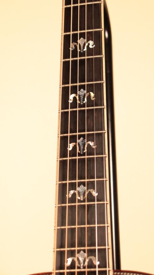 ヘッドにあしらわれた女性の踊り子のインレイ“Dancer”は、まるで手芸品のような繊細さと温かみを感じさせる逸品。細部まで丁寧に表現されたその姿は、優雅に舞う一瞬を切り取ったかのような美しさで、思わず見入ってしまうほど。職人技が光る、アートピースのような存在です。