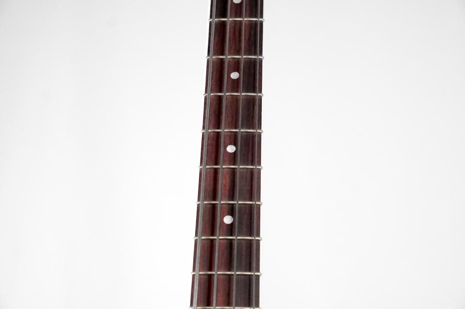 ネックはビーチ材で補強されたメイプル3ピース構造、指板にはローズウッドを採用。