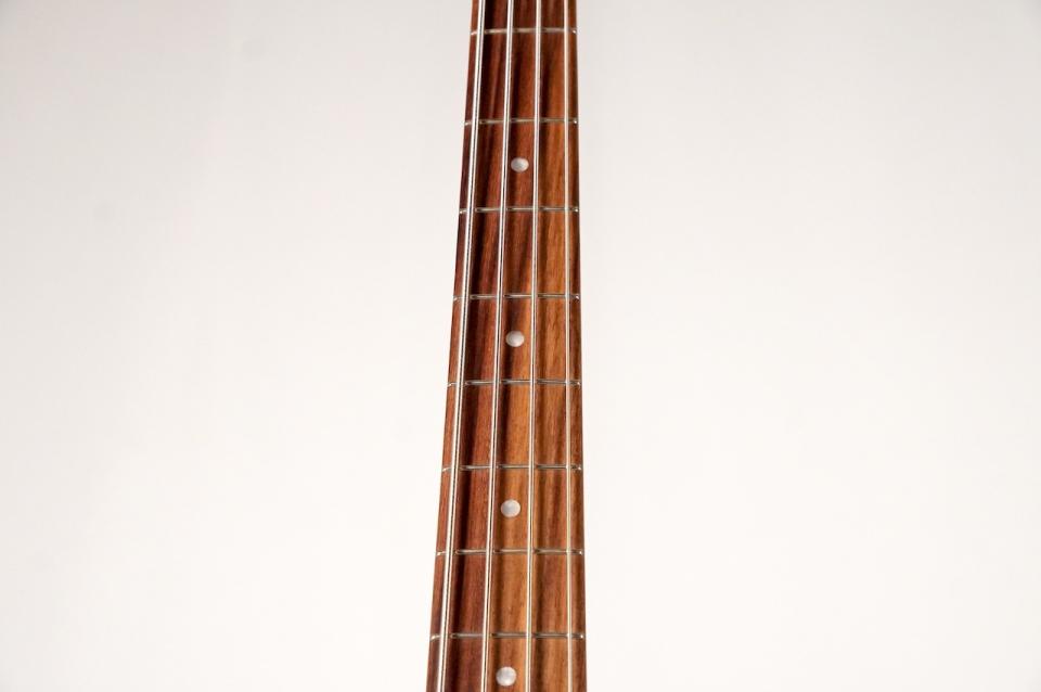 このようなショートスケールサイズのベースの多くが、懐かしい音楽をやる際にぴったりなアコースティックで良きチープな印象のものが多いですが、こちらのモデルはかなりしっかりした太いサウンドで、指弾き、ピック弾き、スラップと問題なく演奏可能です。