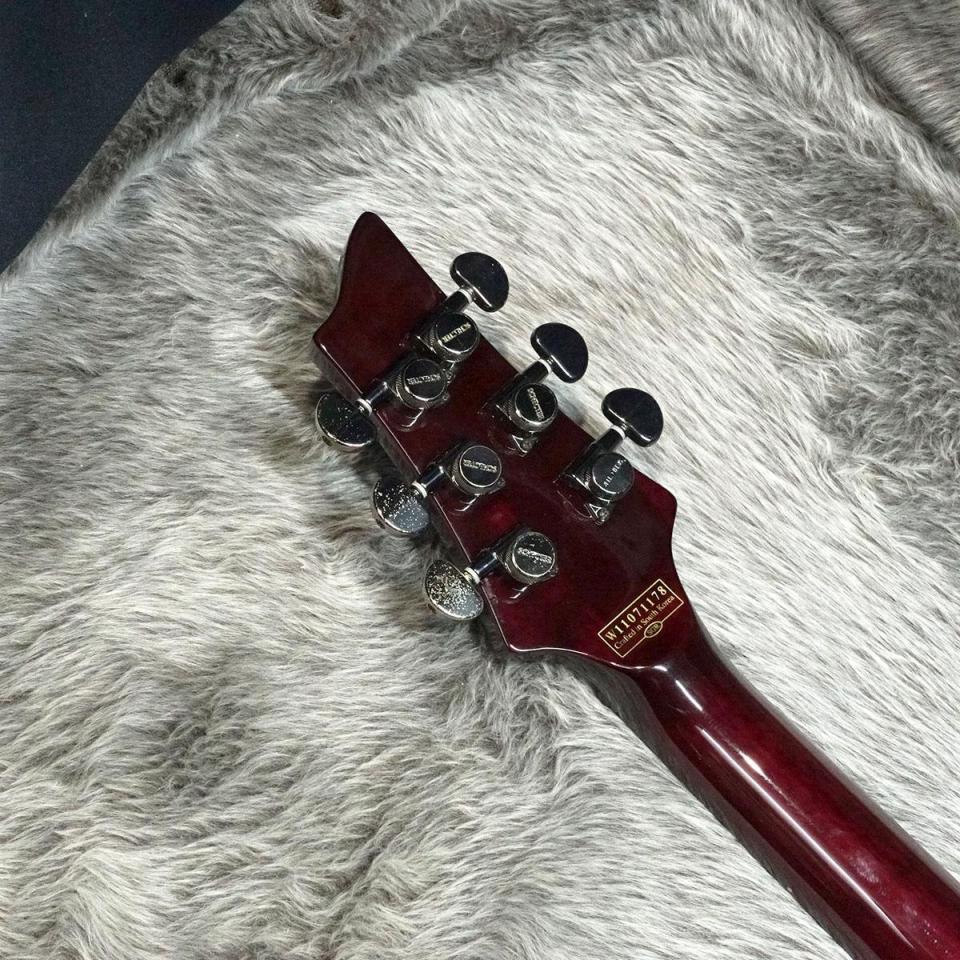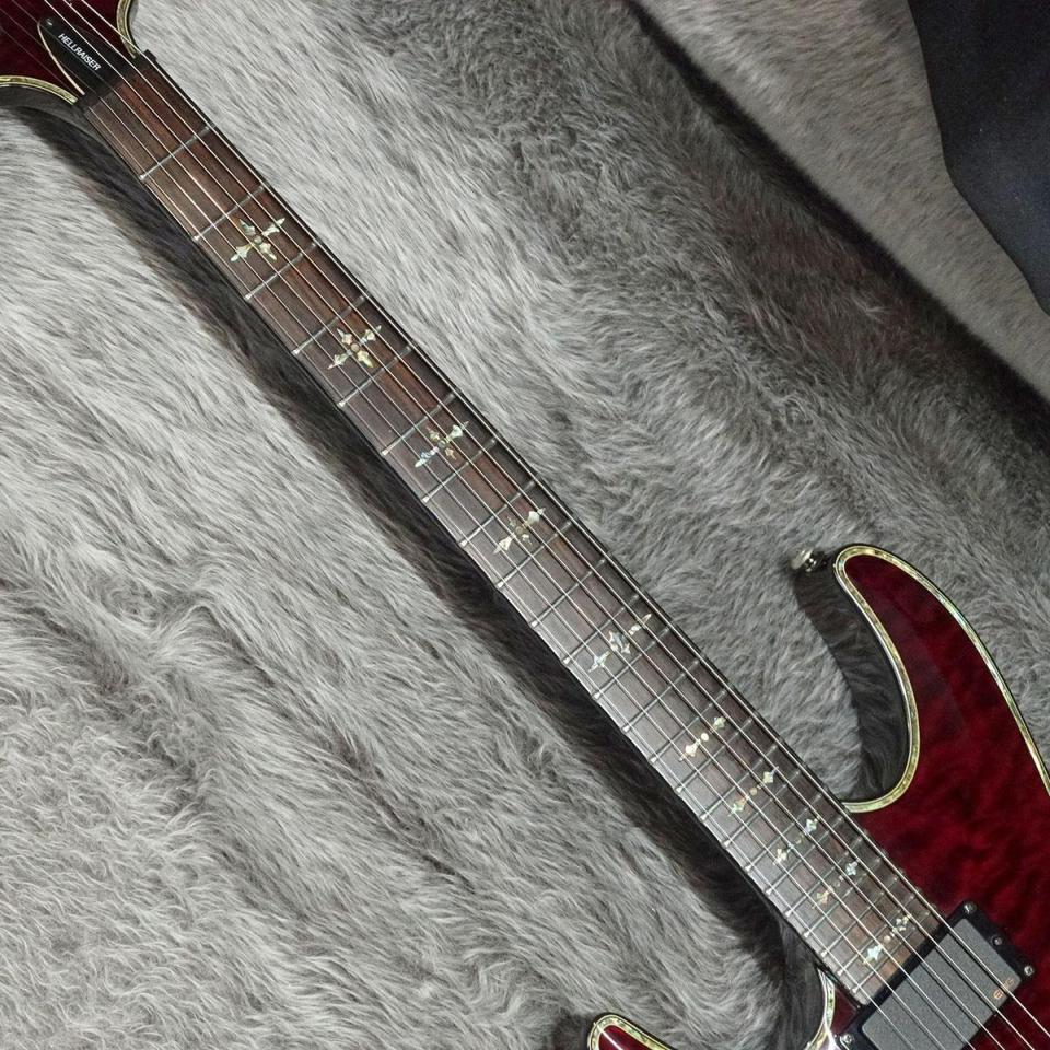 マホガニーバック、キルトメイプルトップのボディにローズウッド指板のマホガニーネックをセットネックでジョイントしたHellraiser。ピックアップはEMG89/81。コイルタップと3WAYスイッチにより、多彩なサウンドメイキングが可能です。