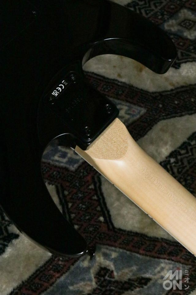 特徴的な尖ったブラックカラーのヘッド、ストラップボタンやダイキャストチューナーを含むオールブラックのハードウェアで仕上げられています。