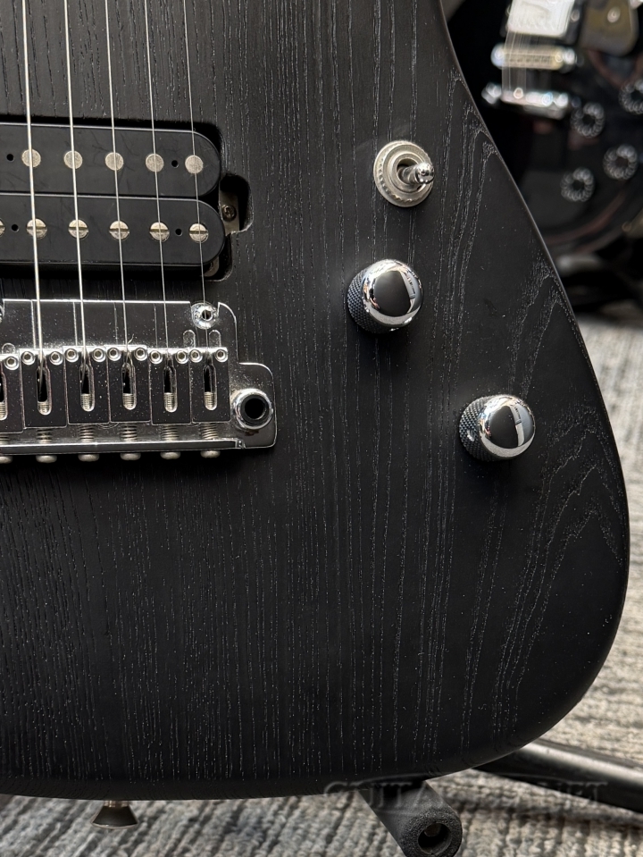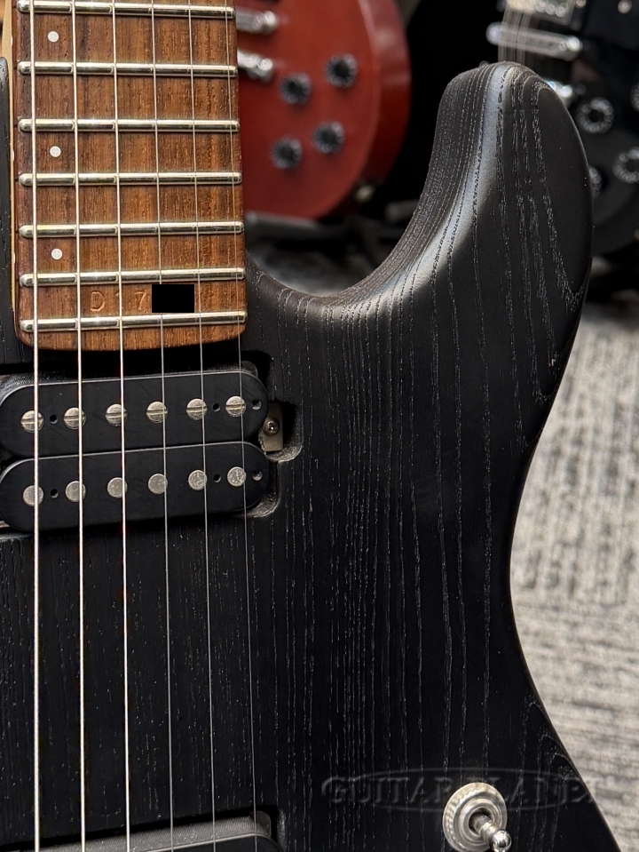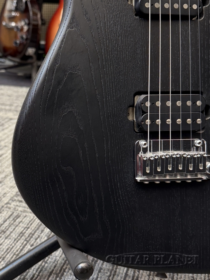 ボディ材に使用されているSwamp Ashの杢目がクッキリと浮き出たサンドブラスト塗装のGrind Blackが武骨なカッコ良さを感じさせてくれる品です。