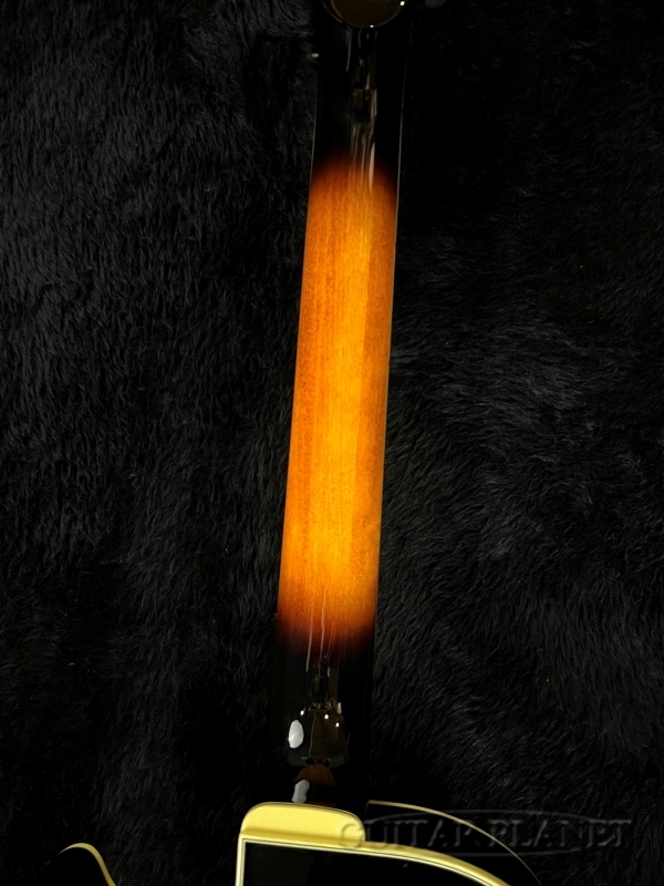 14.75インチ幅スプルーストップ、メイプルサイド&バックのボディに、エボニー指板を貼り合わせた3ピースメイプルネックがセットネック構造にてジョイントされております。
