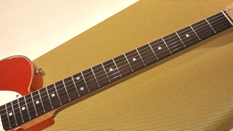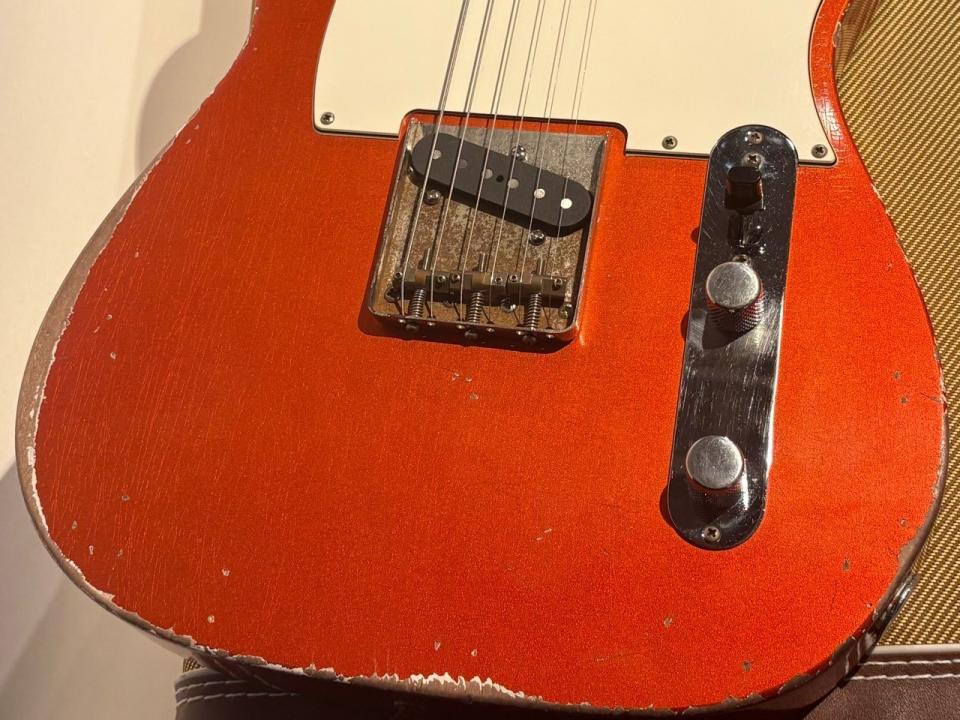 ボディは元からエイジド仕様ですが経年によってさらに渋みを増したキャンディーアップルレッドのアルダーホロウボディ。バキバキのクラックにしっかり錆びたブリッジ周り等まるで40、50年と歴史を重ねてきたと錯覚してしまうような威厳を放ちます。サウンドもホロウ構造により大きな生鳴りとエアー感、そしてエイジドによる生々しい出音が特徴でございます。