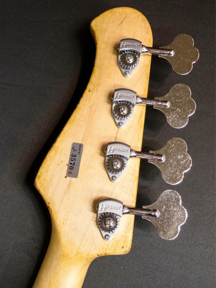 軽量なHipshot B-Styleブリッジとメイプル指板を採用したことにより、重量のあるブリッジ特有のあっさりした音像ではなく倍音を含んだファットなサウンドを基本に3Band EQコントロールを駆使することで、オールドスクールなサウンドからソリッドなモダンサウンドまでサウンドメイキングが可能な個体となっております。