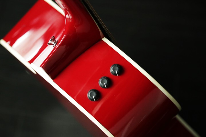 メイプル仕様で、レッドフィニッシュ&純正の後付けピックガードで