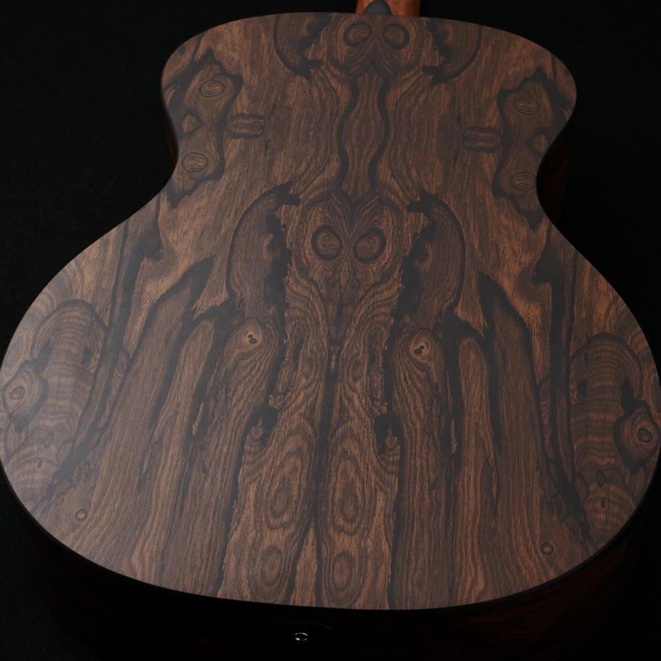 本モデルはトップにサペリ単板、サイド&バックにはHPL(ハイプレッシャーラミネート)と呼ばれる人工材をボディに採用しております。