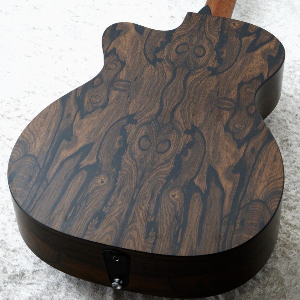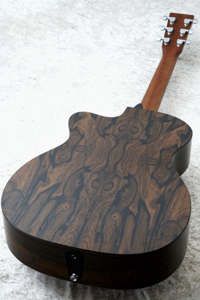 OMC-X2Eはトップにサペリ単板、サイド&バックにはHPL(ハイプレッシャーラミネート)と呼ばれる人工材をボディに採用しております。