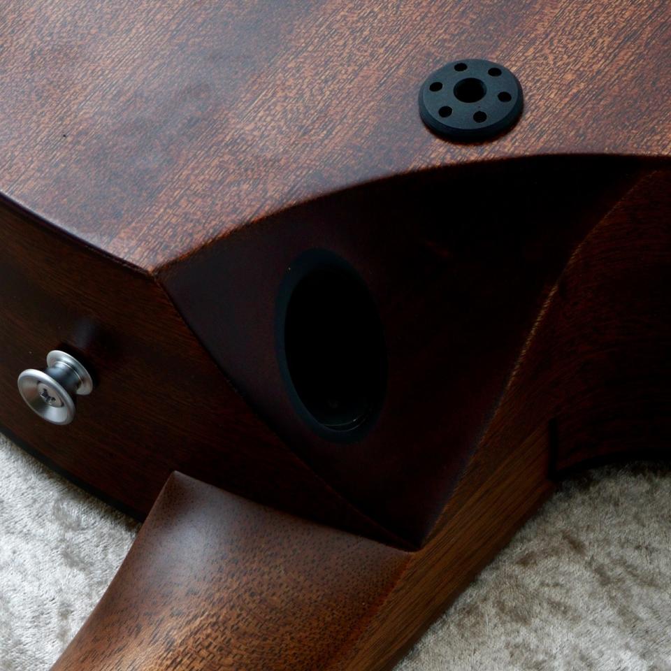 単板スプルーストップが明瞭さと遠達性をもたらし、単板サペリバック&サイドは温かみのある中音域と明るい高音域を実現。
