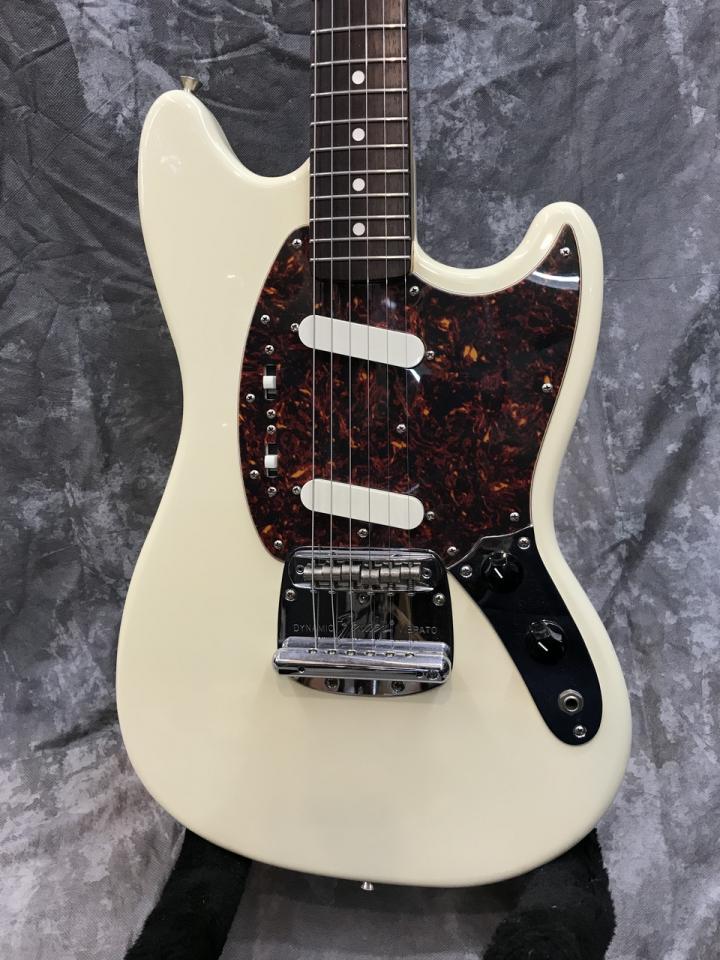 1966年頃の仕様を再現したコンター加工無しのボディ、白ボタンペグのルックスが印象的なムスタング。