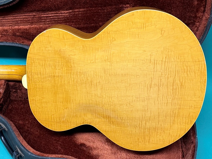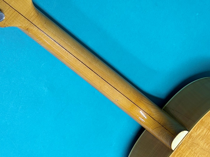 この楽器は、ジョージのものと良く見るとアジャスタブルブリッジ、ネックバインディングの形状は違いますが、メイプルジャンボの同じモデルで、たぶん年代がわずかに違っているものと思われます。